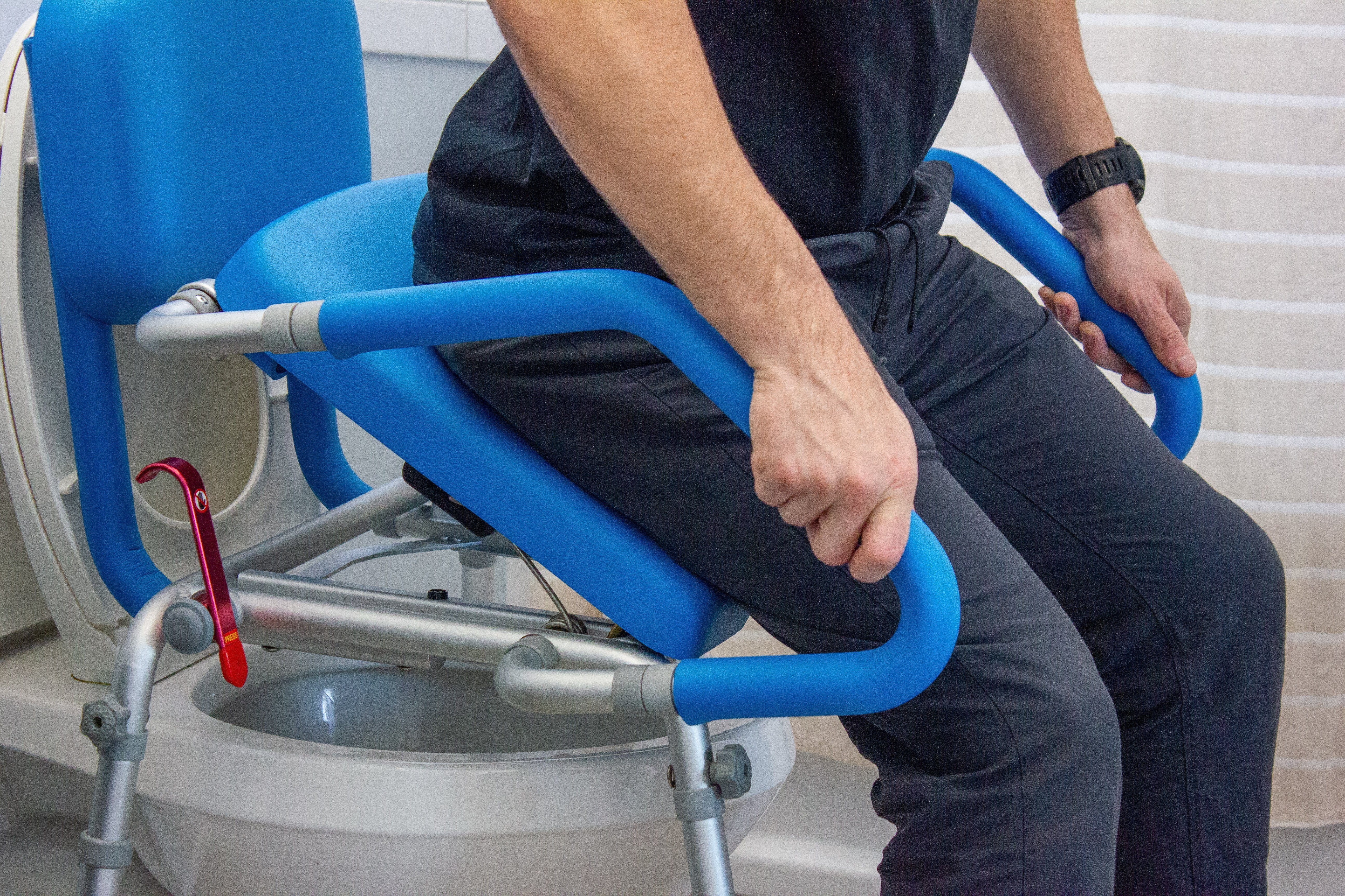 - The industry’s safest and most comfortable bathroom aid, the GentleBoost is a multifunction device that can be used as a freestanding commode (includes 2 pails), over a toilet or as a shower chair.