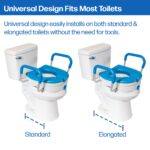 • FITS ROUND AND ELONGATED TOILETS eliminating the need to guess which configuration is required. No assembly required. Heavy duty maximum weight capacity is 350lbs.